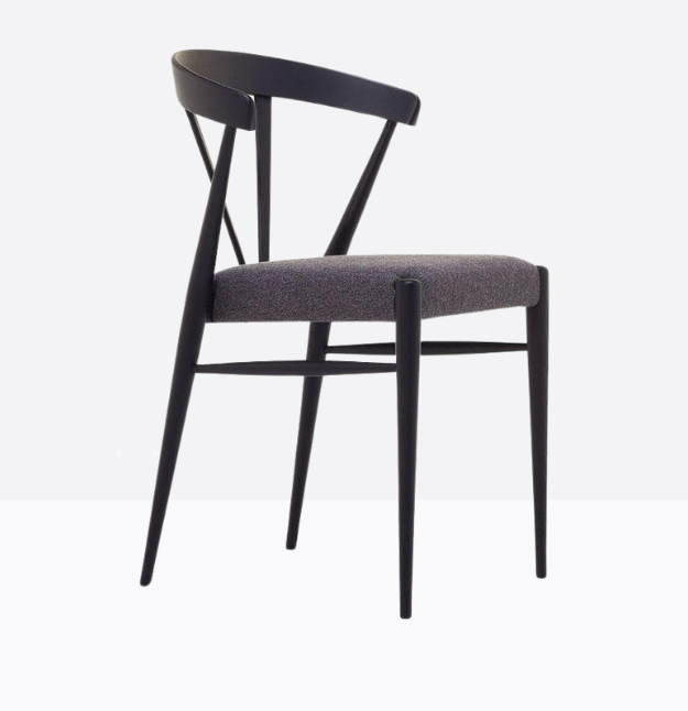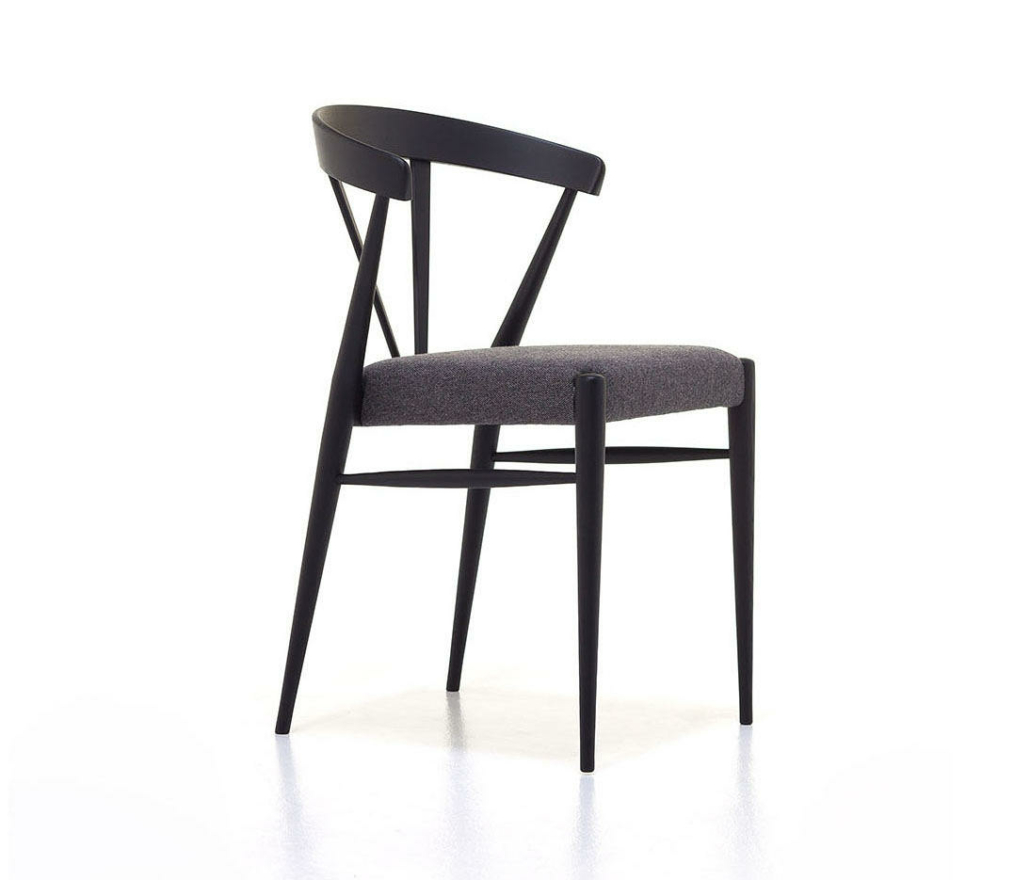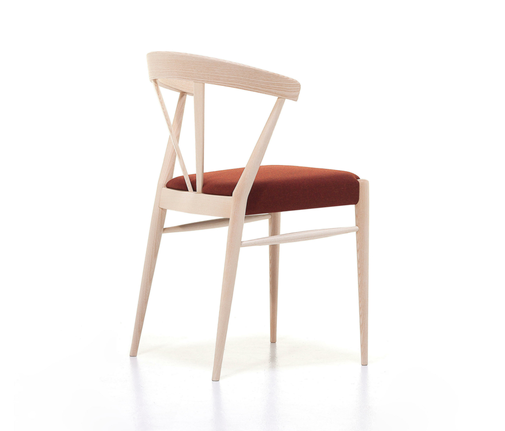 Leggerissima e confortevole, la sedia mod. 120/IMB sfrutta le sottili sezioni degli elementi in legno in un gioco di alta ebanisteria artigianale. La purezza del design strutturale è esaltato dalla seduta intrecciata in cordino, imbottita oppure in legno massello.