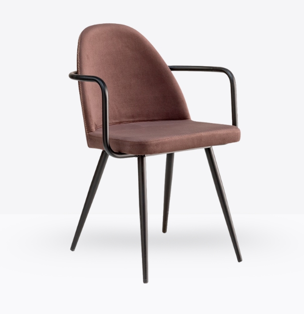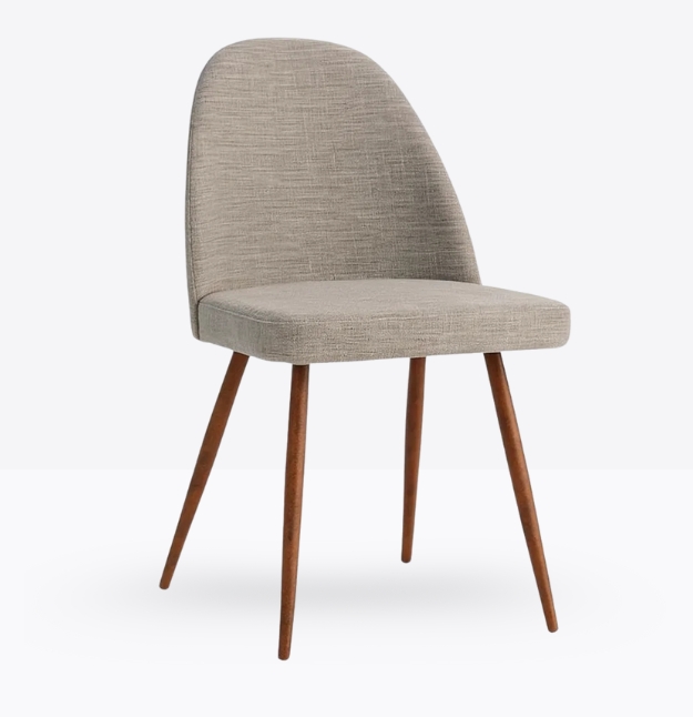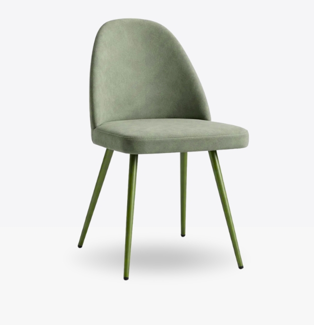 La sedia mod 1982 unisce design moderno e comfort, grazie alla sua seduta imbottita rivestita in similpelle effetto vintage e alle eleganti gambe coniche in metallo cromato. Perfetta per arredare ristoranti, bar, hotel e spazi contract con un tocco sofisticato e accogliente.