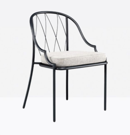 mod. 1412 è una sedia dining con struttura in tubo di acciaio diametro 22, con spessore 2mm per un elevato livello di performance outdoor.