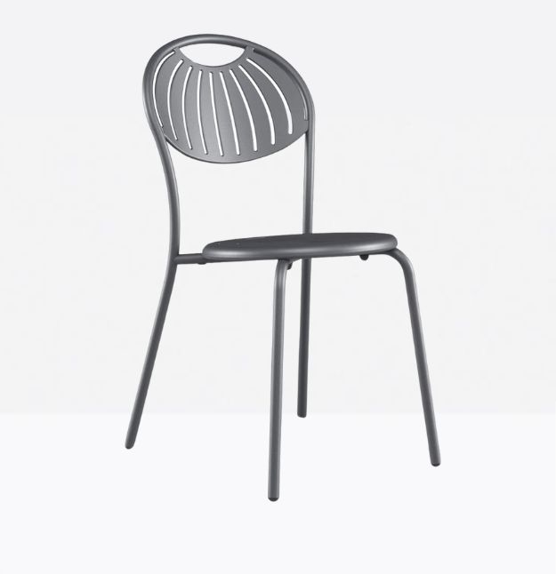 mod. 1416 sedia e sgabello in acciaio, sono una re-intepretazione in chiave contemporanea dell’omonimo e storico ‘best seller’. Il singolare motivo del suo schienale si ispira alle forme della Cupola del Brunelleschi.