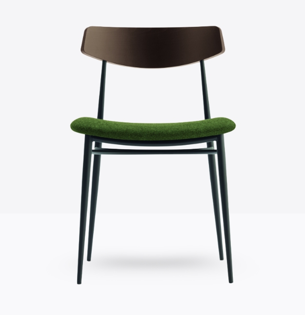 Linee minimali ed un’aria tenace conferiscono alla sedia mod. 1510 versatilità nell’utilizzo. Un agile telaio in metallo sostiene una comoda seduta dal disegno essenziale ed uno schienale in faggio massello, disponibile in diverse varianti.