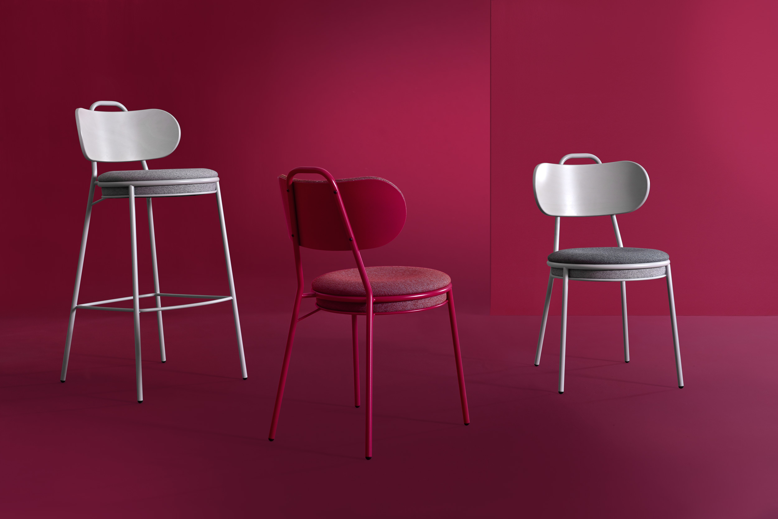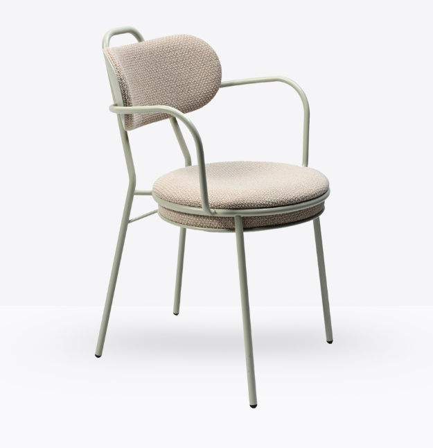 Resistente e minimale, mod. 1530/p ci proietta subito nell’atmosfera contract. Una comoda seduta circolare, disponibile in multistrato di faggio o imbottita e rivestita in cuoio, sostenuta da un telaio di ferro interamente a vista.
