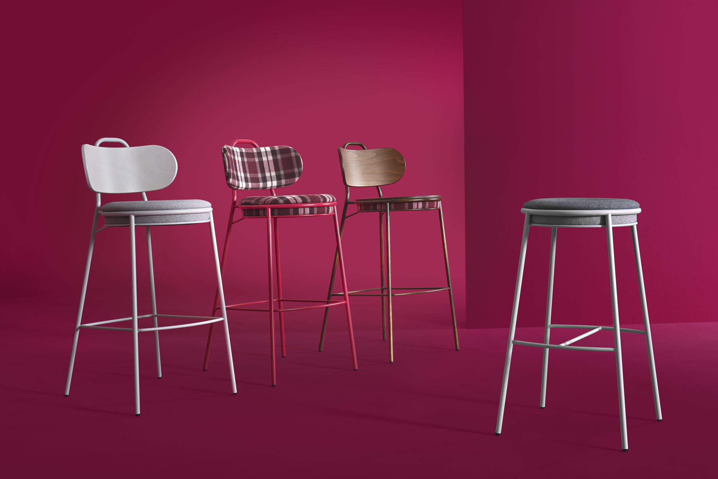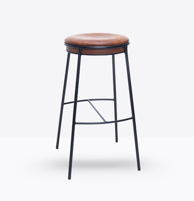 Resistente e minimale, mod. 1530/sg ci proietta subito nell’atmosfera contract. Una comoda seduta circolare, disponibile in multistrato di faggio o imbottita e rivestita in cuoio, sostenuta da un telaio di ferro interamente a vista.