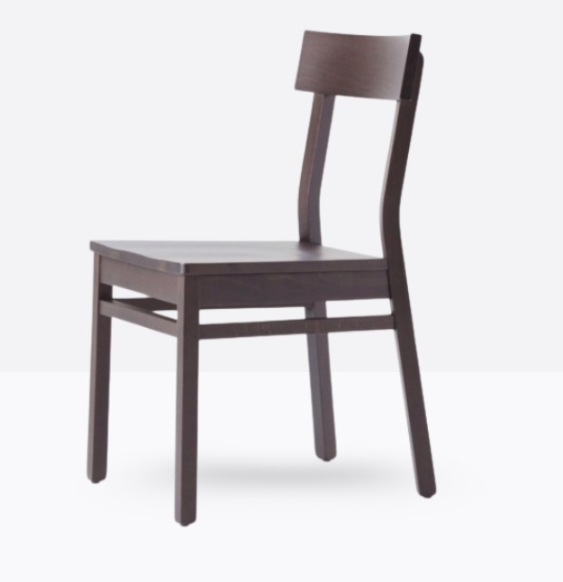 La sedia mod. 163 ha una struttura ed uno schienale in legno di faggio massello; può essere personalizzata in tutte le tinte legno e i colori alla sezione finiture; la seduta è imbottita a incasso o in legno e può essere rivestita con i rivestimenti visibili alla sezione finiture.