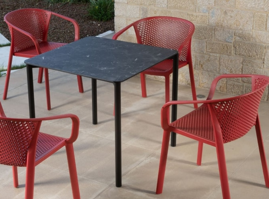 mod. 3363 realizzato in alluminio, abbinato ai piani in Compactop, si adatta perfettamente anche agli ambienti esterni. realizzati per essere facilmente e velocemente assemblati e sono disponibili in un’ampia varietà di colori e finiture, perfetti per i vostri progetti personalizzati. *piano tavolo incluso