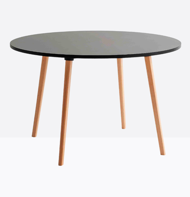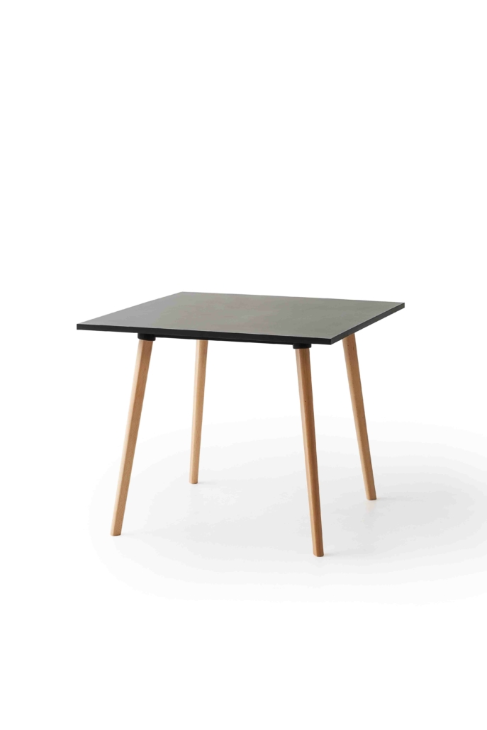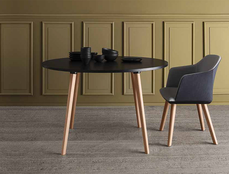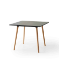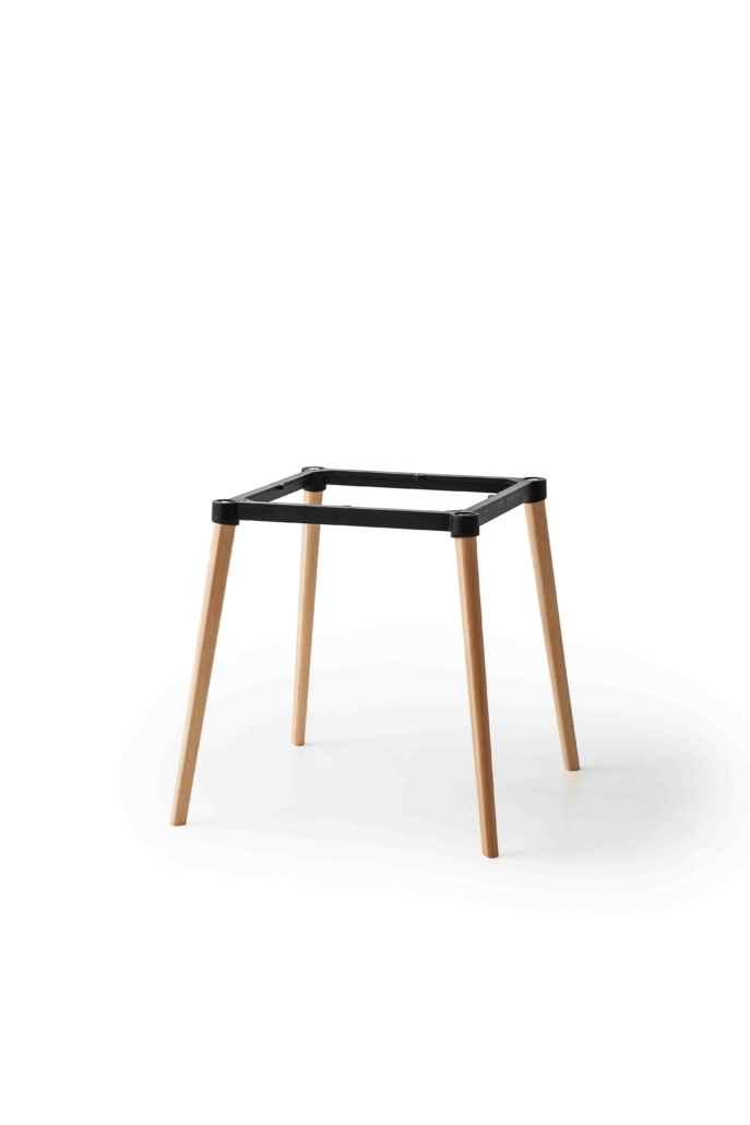 mod. 3375 Tavolo con struttura in metallo sovrastampato con tecnopolimero, gambe in legno massello di faggio o rovere, piani in laminato. *piano tavolo incluso