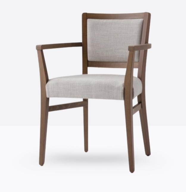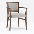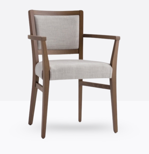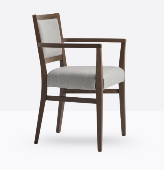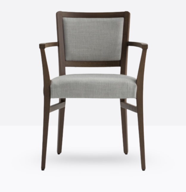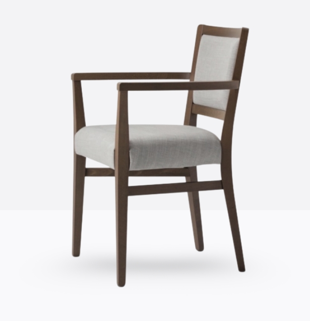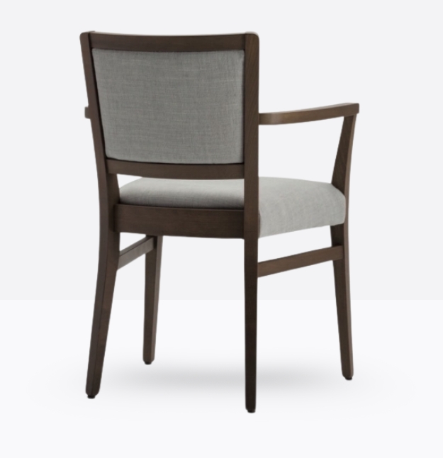 La poltroncina mod. 351/P ha una struttura in legno di faggio massello ed uno schienale in legno di faggio massello rivestito; può essere personalizzata in tutte le tinte legno e i colori laccati nella sezione finiture; lo schienale è imbottito e la seduta è imbottita a incasso o coprente.