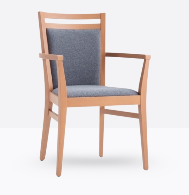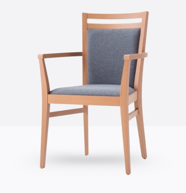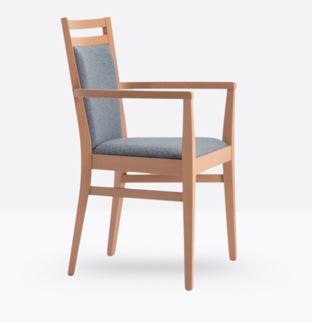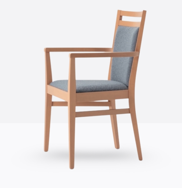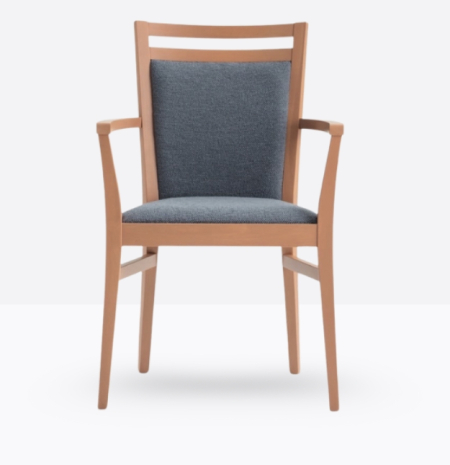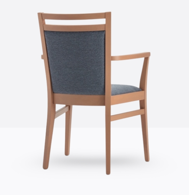 La poltroncina mod. 352/I ha una struttura in legno di faggio massello ed uno schienale in legno di faggio massello rivestito; può essere personalizzata in tutte le tinte legno e i colori laccati nella sezione finiture; lo schienale è imbottito e la seduta è imbottita a incasso.