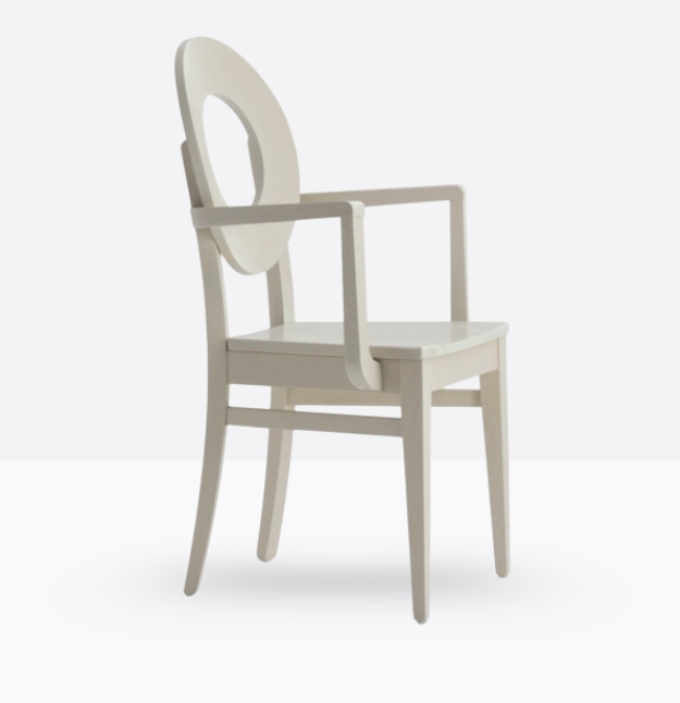 La poltroncina mod. 354/P ha una struttura ed uno schienale in legno di faggio massello; può essere personalizzata in tutte le tinte legno e i colori alla sezione finiture; la seduta è in legno o imbottita a incasso e può essere rivestita con i rivestimenti visibili alla sezione finiture.