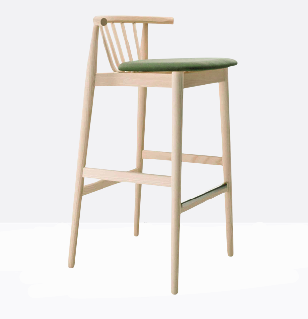 L’elegante sgabello mod. 631/SI rilegge in chiave moderna il design scandinavo della metà del ventesimo secolo. I particolari fuselli in legno curvato che contraddistinguono questa collezione le donano carattere e al contempo solidità.
