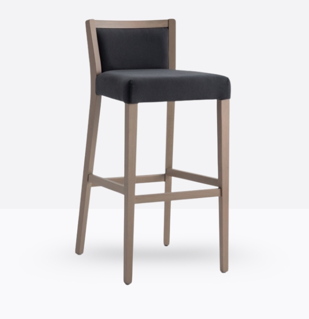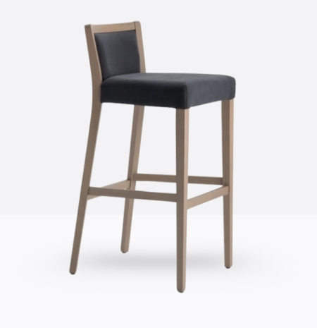 Lo sgabello mod. 655/SC ha una struttura in legno di faggio massello ed uno schienale in legno di faggio massello rivestito; può essere personalizzata in tutte le tinte legno e i colori laccati nella sezione finiture; lo schienale è imbottito e la seduta è imbottita a incasso.