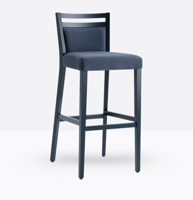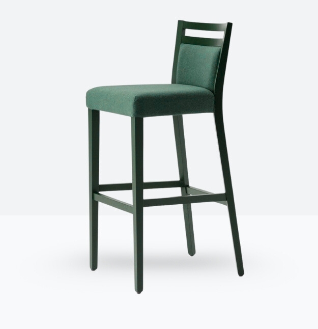 Lo sgabello mod.656/S ha una struttura in legno di faggio massello ed uno schienale in legno di faggio massello rivestito; può essere personalizzato in tutte le tinte legno e i colori laccati visibili alla sezione finiture.