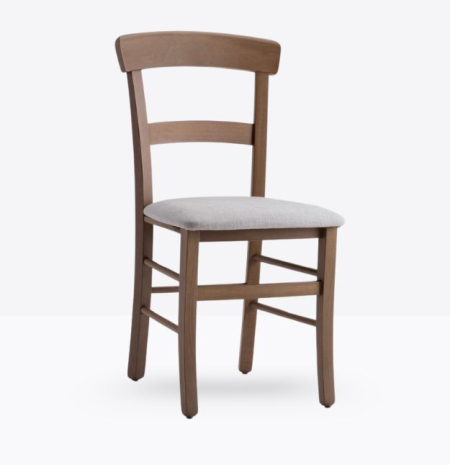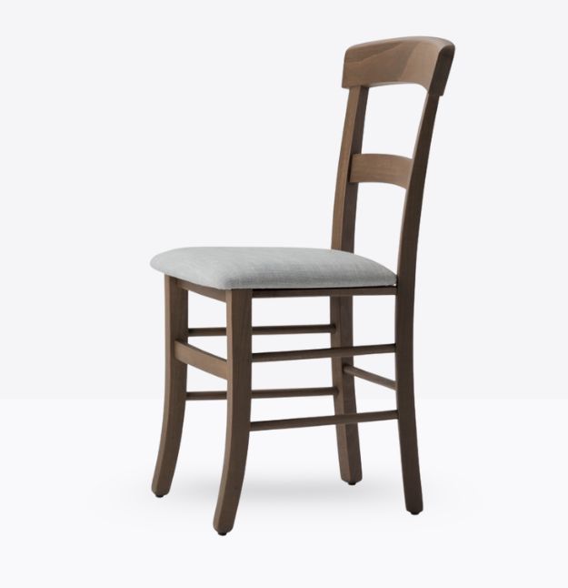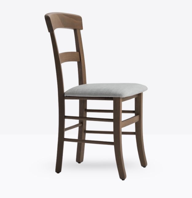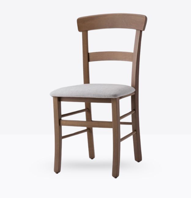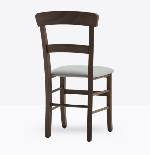 La sedia mod. 657/imb ha una struttura ed uno schienale in legno di faggio massello; può essere personalizzato in tutte le tinte legno e i colori alla sezione finiture; la seduta è imbottita a incasso o in legno e può essere rivestita con i rivestimenti visibili alla sezione finiture.
