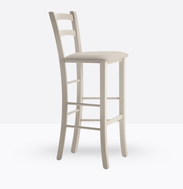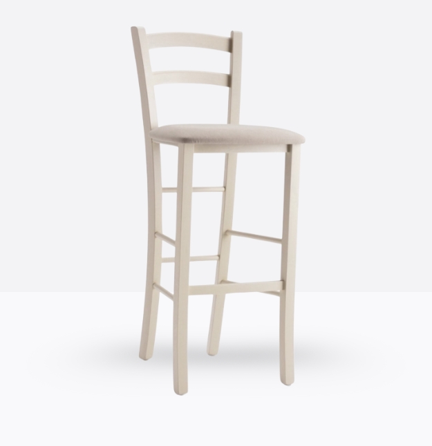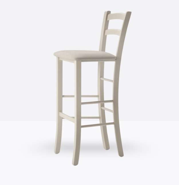 La sgabello mod. 658/SI ha una struttura ed uno schienale in legno di faggio massello; può essere personalizzata in tutte le tinte legno e i colori alla sezione finiture; la seduta è imbottita a incasso e può essere rivestita con i rivestimenti visibili alla sezione finiture.