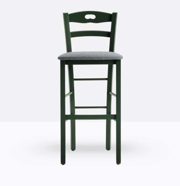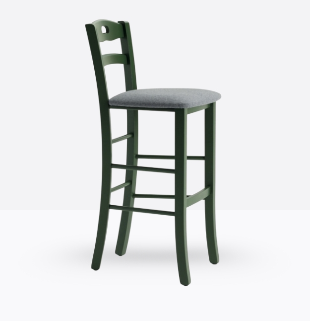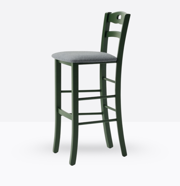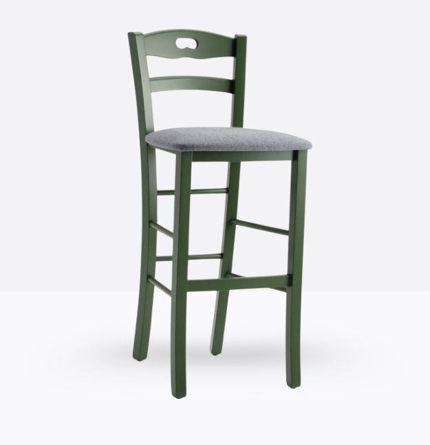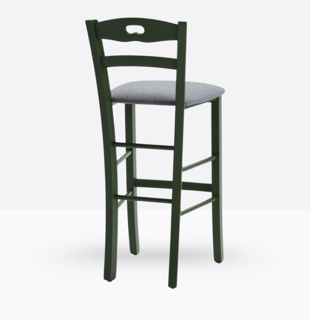 Lo sgabello mod. 659/sc ha una struttura ed uno schienale in legno di faggio massello; può essere personalizzata in tutte le tinte legno e i colori alla sezione finiture; la seduta è imbottita a incasso e può essere rivestita con i rivestimenti visibili alla sezione finiture.