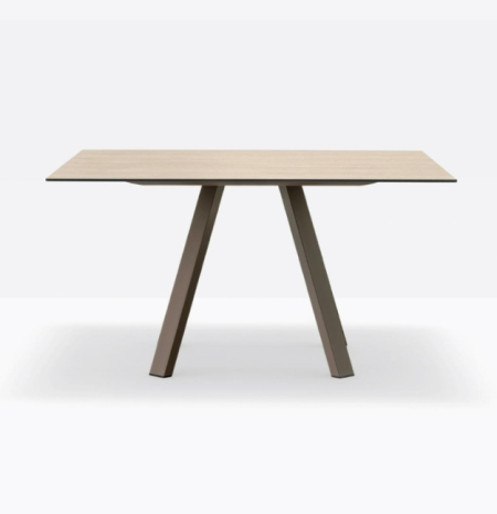 mod. 7020 è lineare e rigoroso dal punto di vista strutturale ma al contempo versatile e pensato per situazioni d’uso differenti. Tavolo con gambe a cavalletto in acciaio e ripiano tondo supporato da una cornice in estruso di alluminio. *piano tavolo incluso