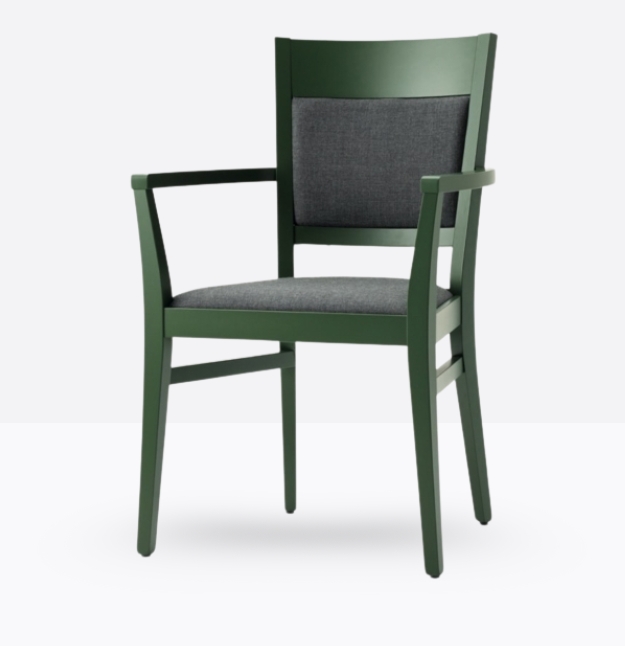 La poltroncina 948/P ha una struttura in legno di faggio massello ed uno schienale in legno di faggio massello rivestito; può essere personalizzata in tutte le tinte legno e i colori laccati nella sezione finiture; lo schienale è imbottito e la seduta è imbottita a incasso.