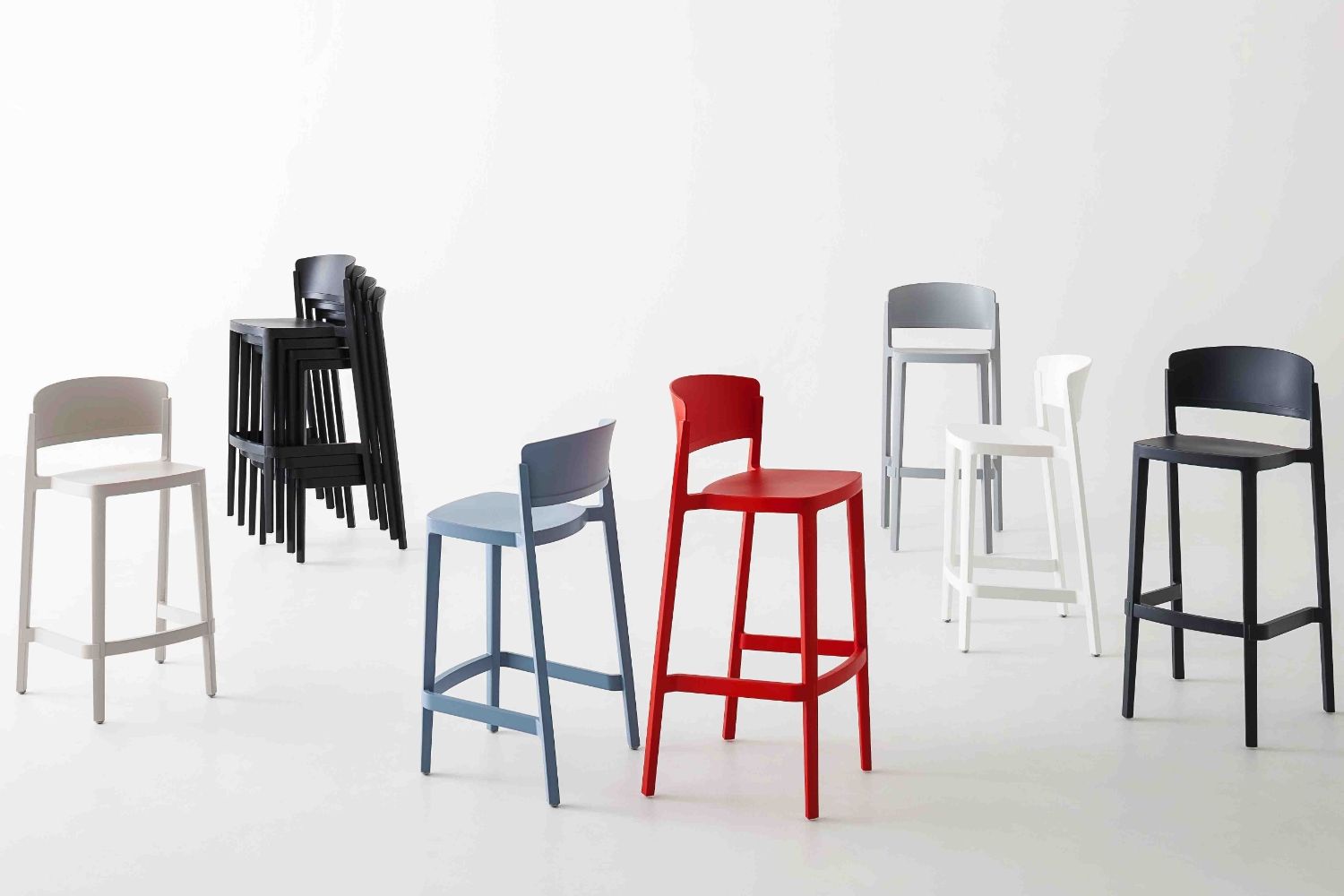 La seduta Abuela Stool 77 è realizzata in tecnopolimero e disponibile in due dimensioni, il prodotto risulta essere perfettamente proporzionato, resistente sia per uso indoor che outdoor, confortevole anche per lunghe attese, leggero e semplicemente impilabile.