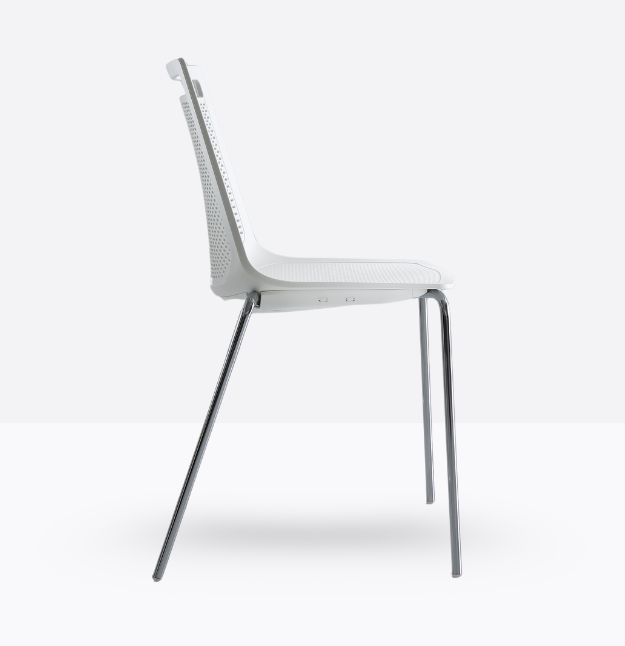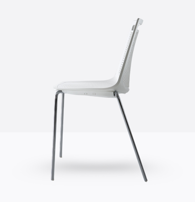 Akami NA, La particolare foratura dello schienale, realizzata con 1034 fori ellittici, consente una corretta traspirazione e un benessere generale dell’utente, anche per un uso prolungato. La maniglia integrata nel disegno della scocca è ottimale per una semplice trasportabilità.