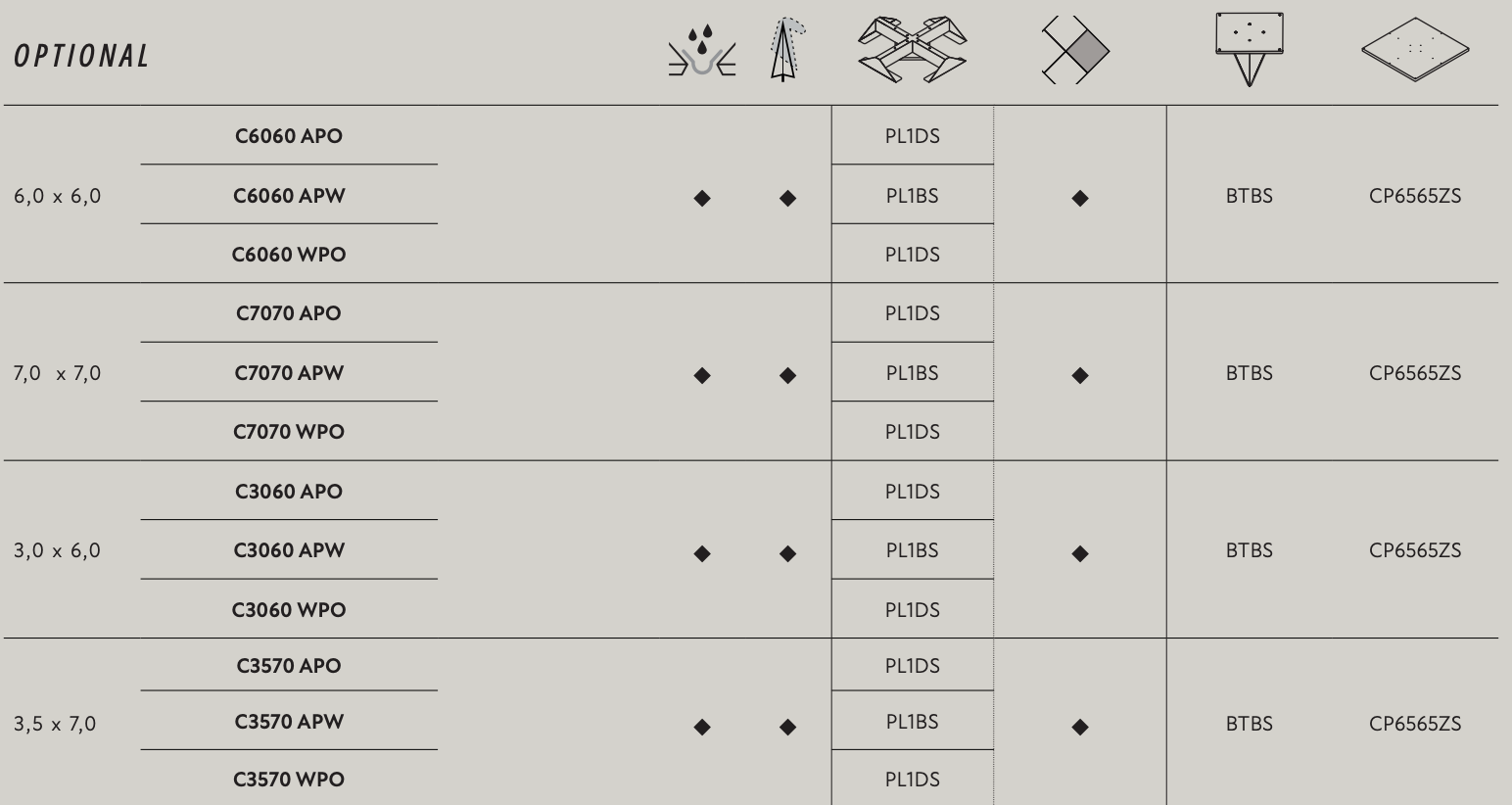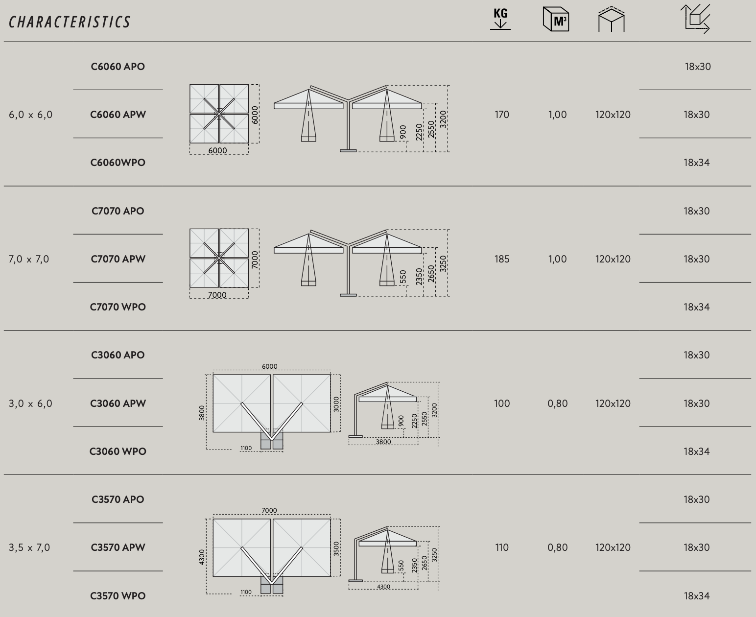 | Copertura max | 700×700 cm / 600×300-700×350 cm |