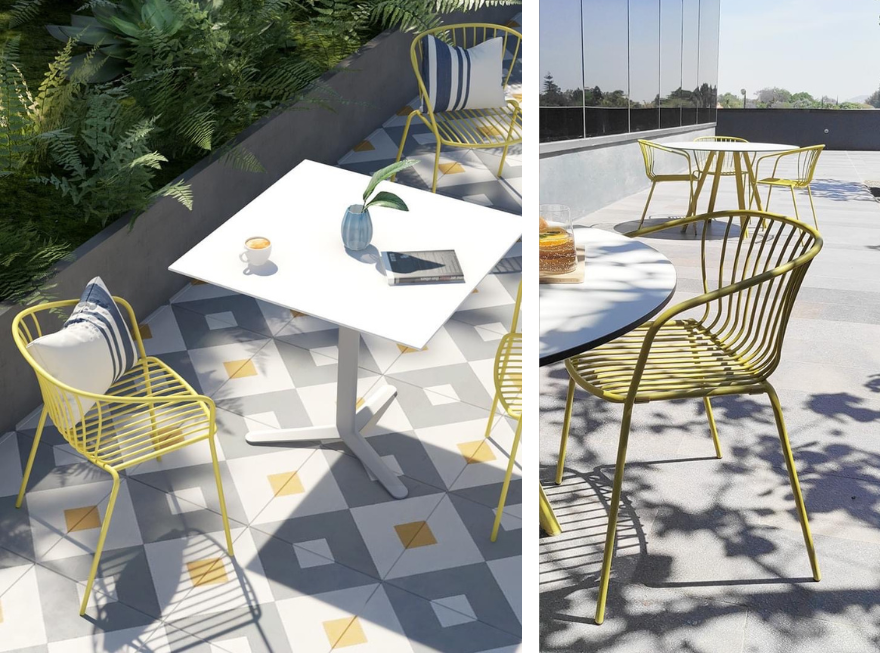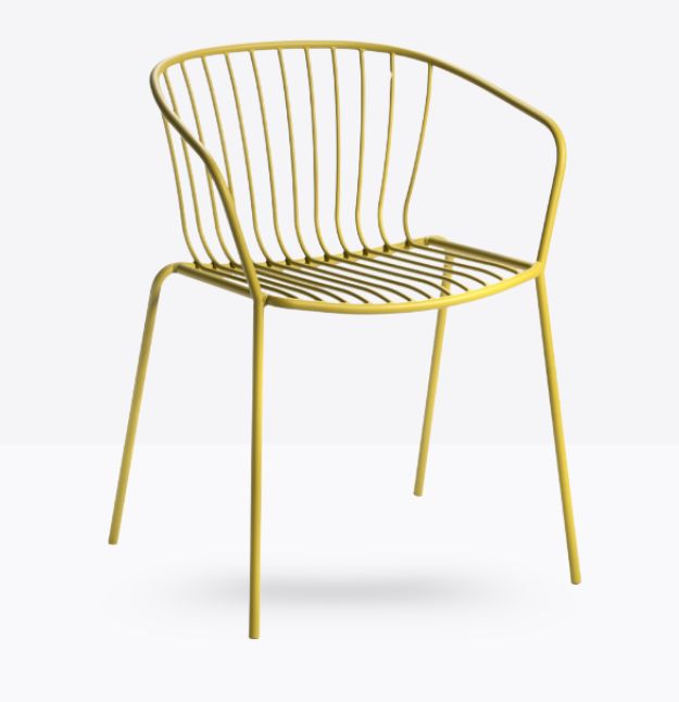 Amitha B è una famiglia di sedute outdoor in metallo dalle linee classiche ed eleganti. La seduta impilabile in tubo di acciaio, dalle forme accoglienti ed ampie, si rivela estremamente confortevole una volta seduti.