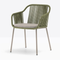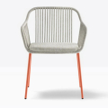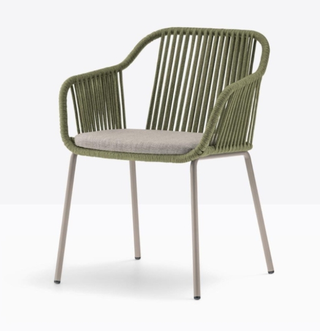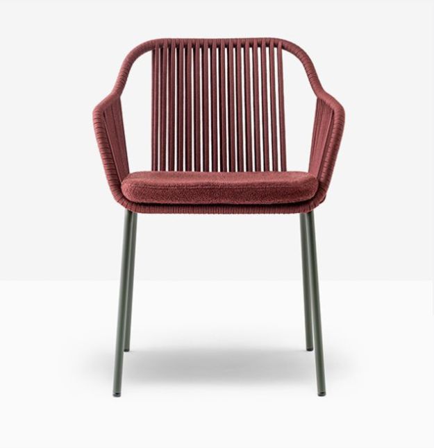 La Poltrona babila twist 2795 in acciaio é caratterizzata da una seduta ampia e accogliente, ricoperta da un intreccio realizzato con una corda piatta di polipropilene. Il tratto distintivo è la combinazione tra la scocca intrecciata e il telaio in tubo d’acciaio provvisto di doghe per la seduta; dove appoggia un confortevole cuscino imbottito in poliuretano espanso drenante, capace di asciugare velocemente.