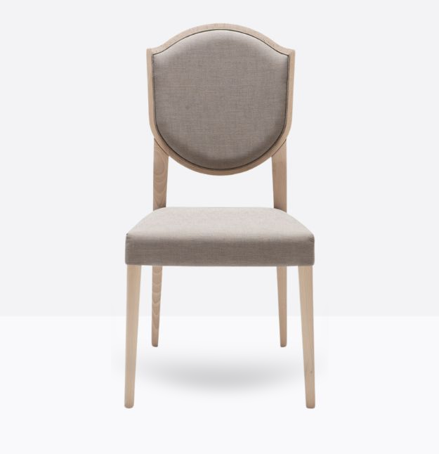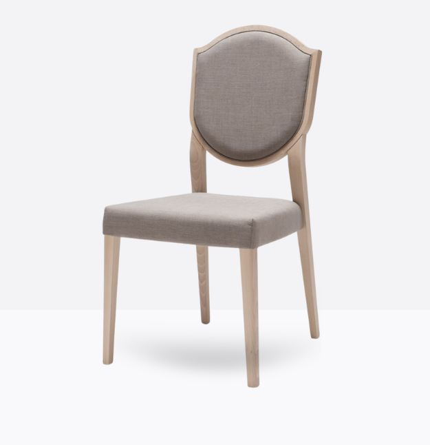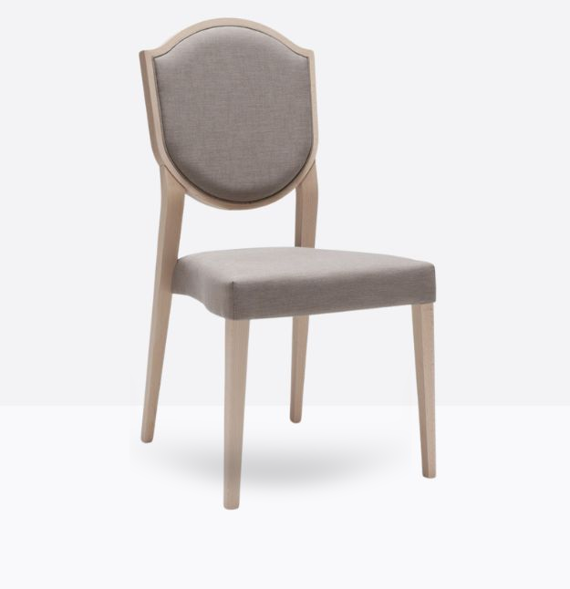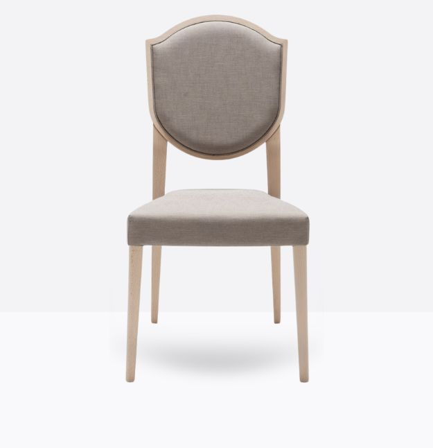 La sedia Blason 180 ha una struttura in legno di faggio massello ed uno schienale a forma di scudo in legno di faggio massello rivestito, può essere personalizzata in tutte le tinte legno e i colori laccati visibili in questa scheda o alla sezione finiture del sito, nonchè in tinta cliente o colori a campione, lo schienale è imbottito, la seduta, dotata di cinghie elastiche, è imbottita su fusto ed entrambi possono essere tappezzati con stoffa cliente o con i rivestimenti visibili alla sezione finiture del sito.