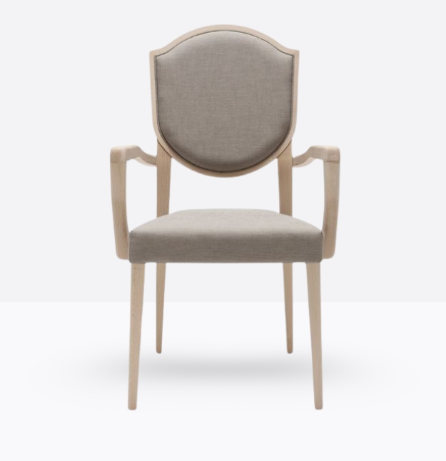 La poltrona Blason 181 ha una struttura in legno di faggio massello ed uno schienale a forma di scudo in legno di faggio massello rivestito, può essere personalizzata in tutte le tinte legno e i colori laccati visibili in questa scheda o alla sezione finiture del sito, nonchè in tinta cliente o colori a campione, lo schienale è imbottito, la seduta è imbottita in appoggio ed entrambi possono essere tappezzati con stoffa cliente o con i rivestimenti visibili alla sezione finiture del sito.