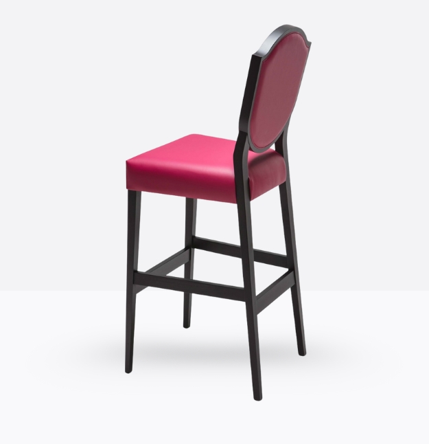 Lo sgabello Blason 185 ha una struttura in legno di faggio massello ed uno schienale a forma di scudo in legno di faggio massello rivestito, può essere personalizzata in tutte le tinte legno e i colori laccati visibili in questa scheda o alla sezione finiture del sito, nonchè in tinta cliente o colori a campione, lo schienale è imbottito, la seduta, dotata di cinghie elastiche, è imbottita su fusto ed entrambi possono essere tappezzati con stoffa cliente o con i rivestimenti visibili alla sezione finiture del sito.