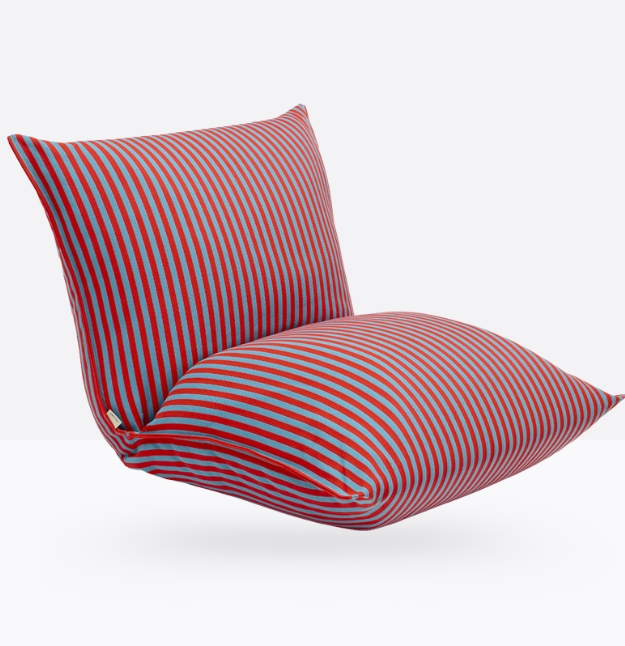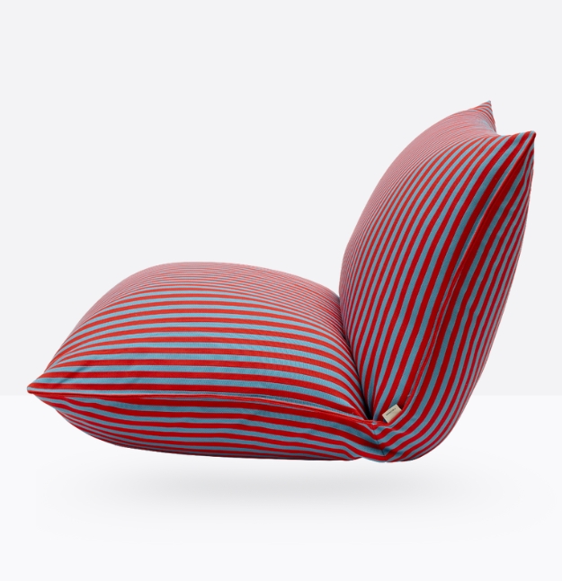 La collezione Brezza si arricchisce di un nuovo, inaspettato elemento: la poltrona imbottita Brezza Relax. Pensata per gli spazi outdoor, trae ispirazione dalla forma archetipica di due grandi cuscini che, accostati, creano una seduta con schienale dalla morfologia generosa e paffuta.