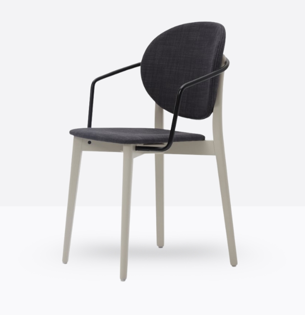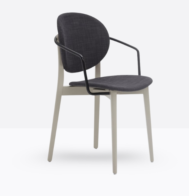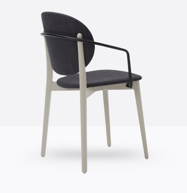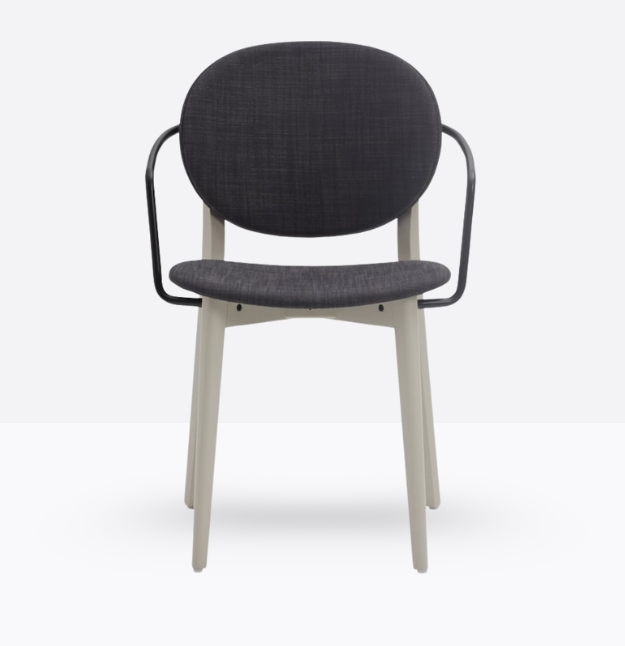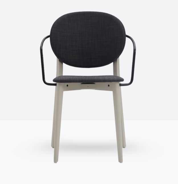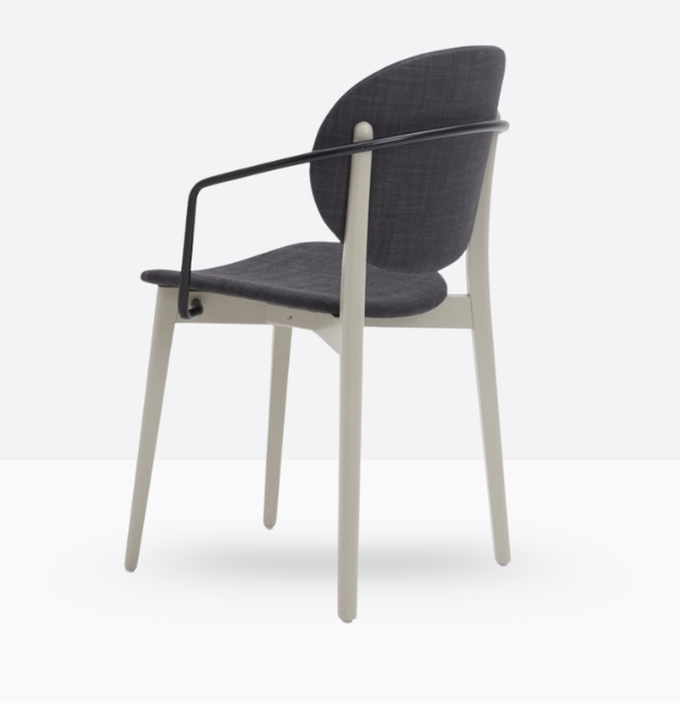 La poltrona Dame 368 ha una struttura in legno di faggio massello ed uno schienale ovale in legno multistrati curvato rivestito, sia gli elementi in legno che quelli in metallo possono essere personalizzati in tutte le tinte e i colori laccati visibili in questa scheda o alla sezione finiture del sito, nonchè in tinta cliente o colori a campione, lo schienale è imbottito, la seduta curvata nella versione larga è imbottita in appoggio ed entrambi possono essere tappezzati con stoffa cliente o con i rivestimenti visibili alla sezione finiture del sito.