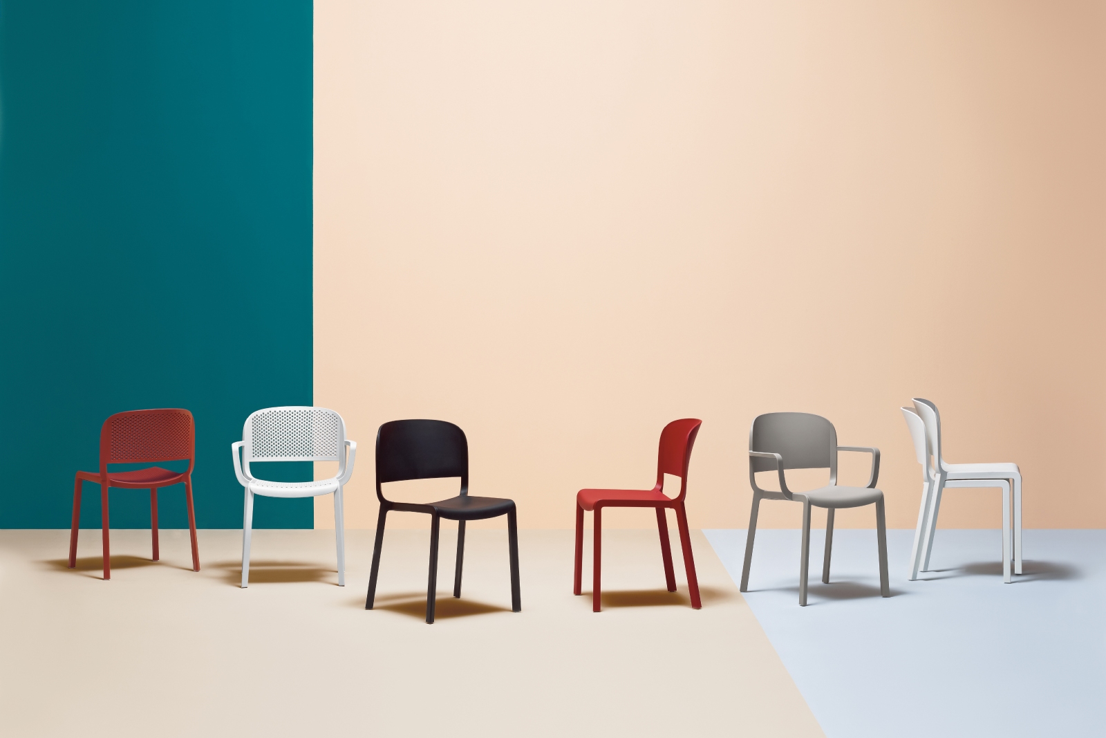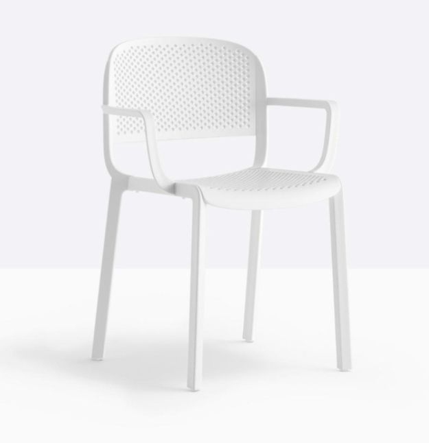 La poltroncina Dome 266 evoca la gloriosa tradizione delle sedie da bistrot con silhouette arcuate e le generose forme delle cupole dei monumenti che impreziosiscono molte città nel mondo. Sedia in polipropilene realizzata attraverso stampaggio a iniezione caricato a fibre di vetro con delicati dettagli che richiamano gli incastri del legno. Impilabile.