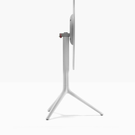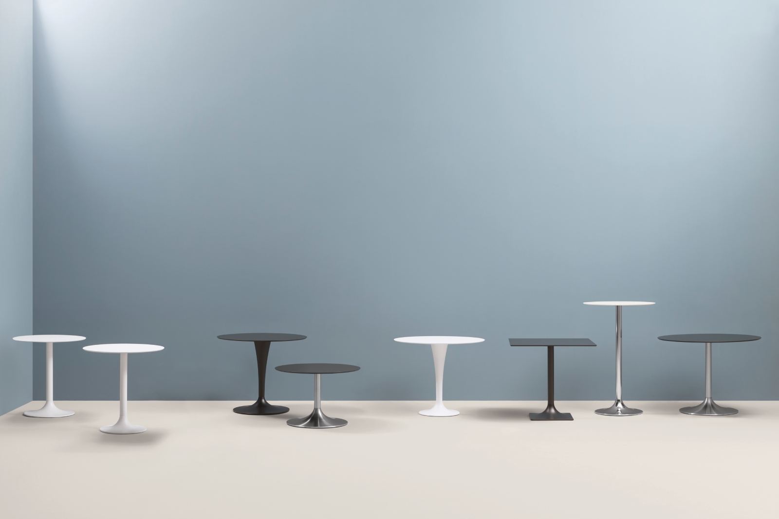 Dream 4820, la colonna cilindrica o conica si unisce armonicamente alla base. base in ghisa sabbiata e colonna cilindrica in acciaio. Abbinabile a ripiani in diverse dimensioni e finiture. * piano tavolo escluso