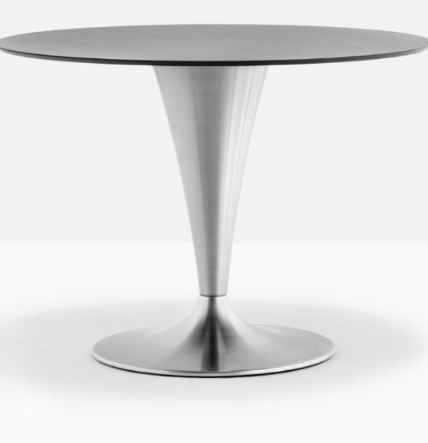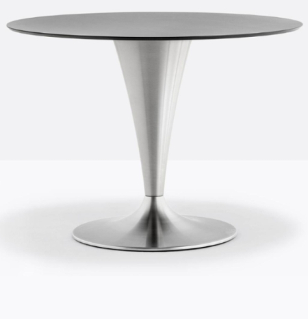 Dream 4841 , la colonna cilindrica o conica si unisce armonicamente alla base. base in ghisa sabbiata e colonna cilindrica in acciaio. Abbinabile a ripiani in diverse dimensioni e finiture. * piano tavolo escluso