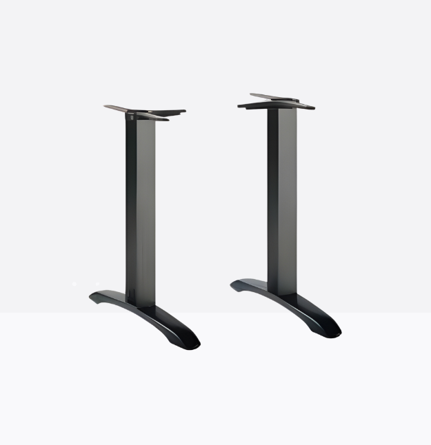 Easy 4381 proposta nella versione a due basi basi in ghisa sabbiata verniciata e colonne in acciaio tonde o quadrate, abbinabile a ripiani rettangolari in diverse dimensioni e finiture. *piano tavolo escluso