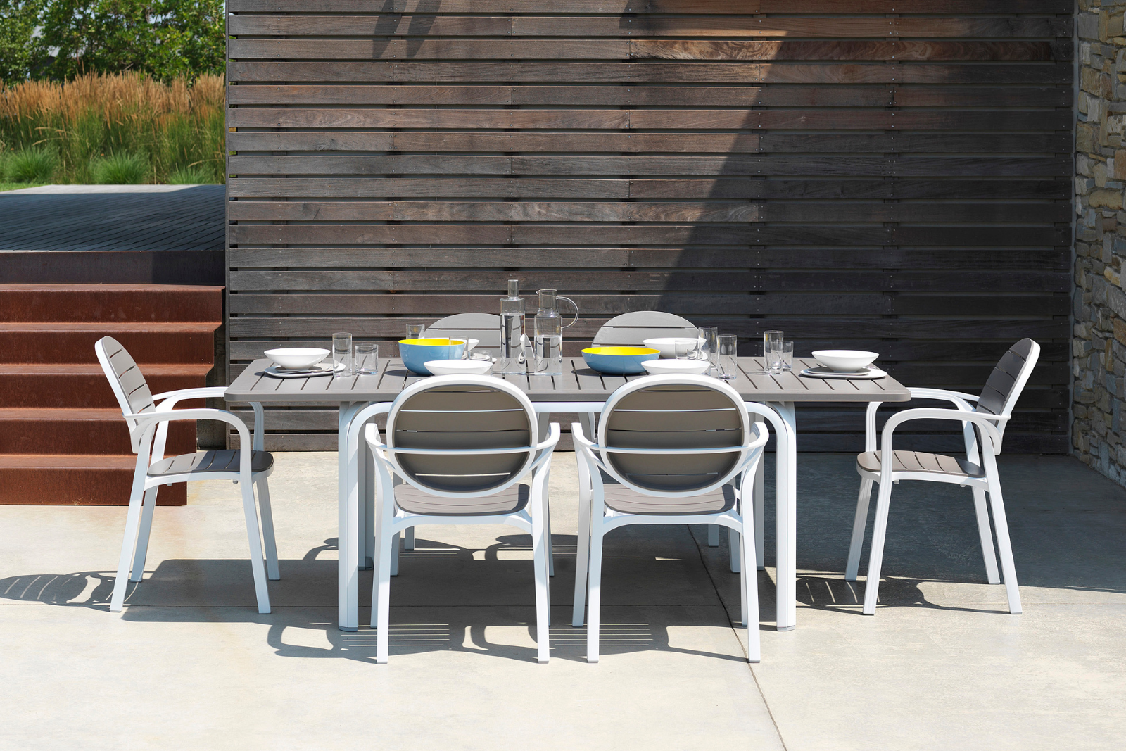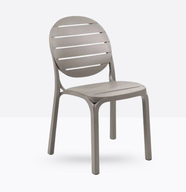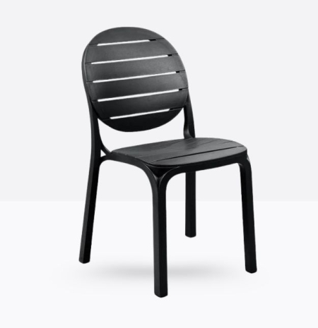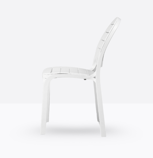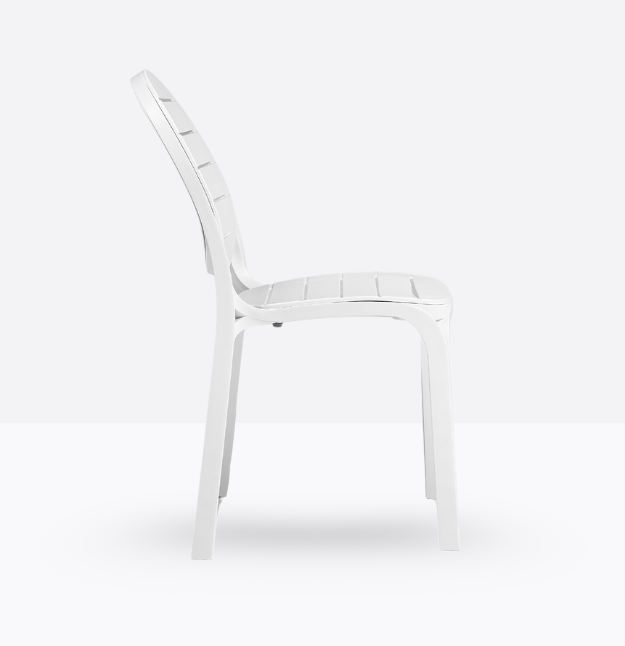 Seduta in resina fiberglass dal linguaggio contemporaneo, Erica con seduta e schienale disegnati da ampie doghe. Le gambe si diramano in fasci sottili tangenti a seduta e schienale. Leggera e impilabile.