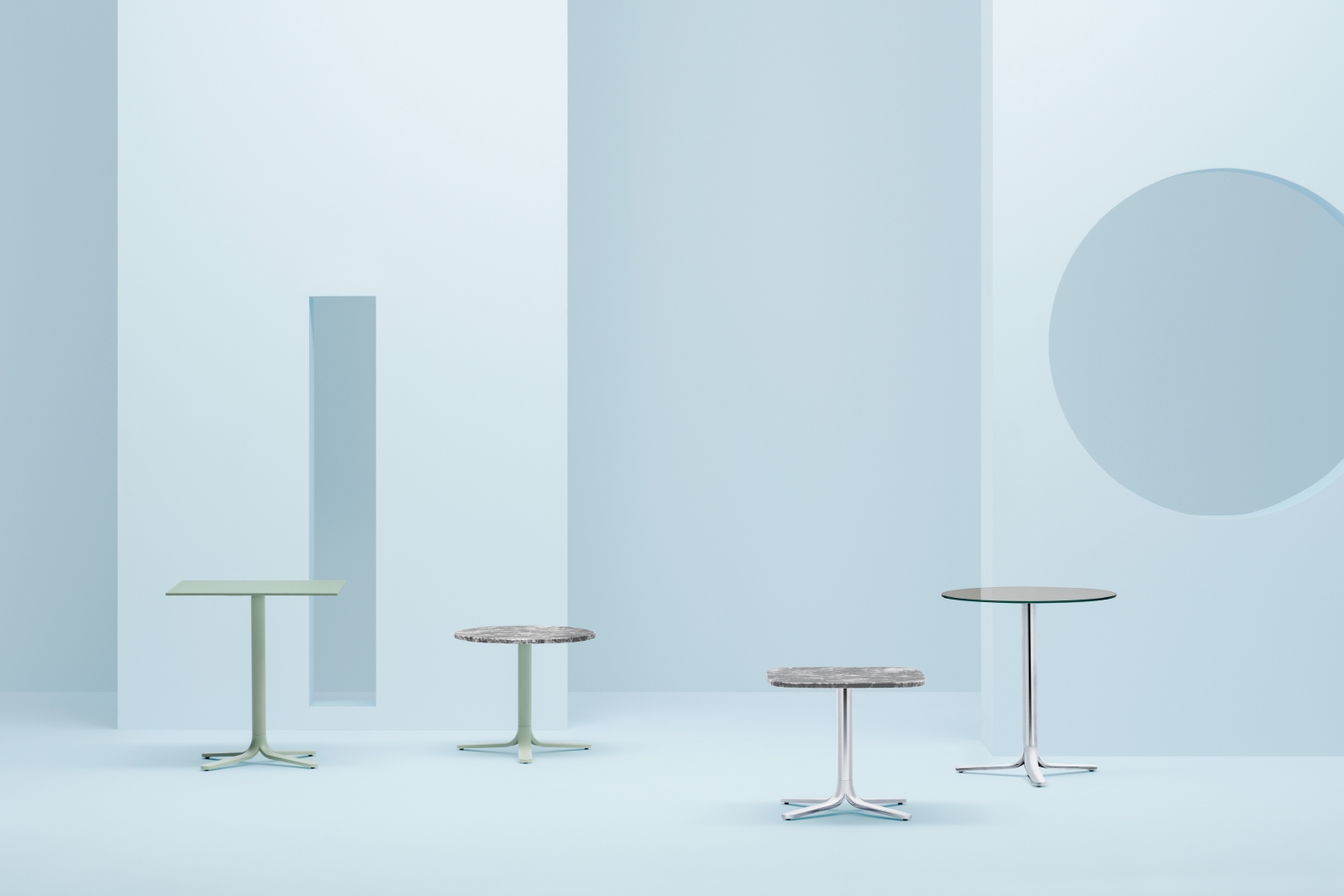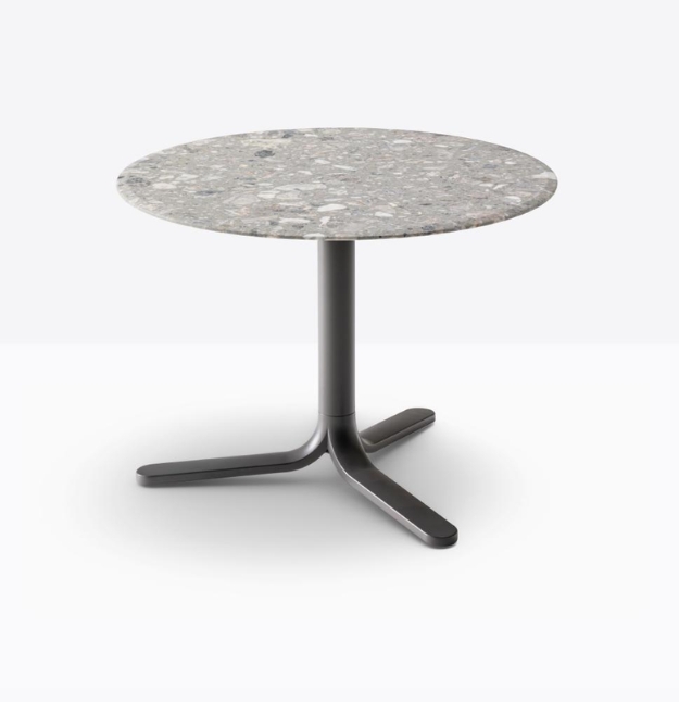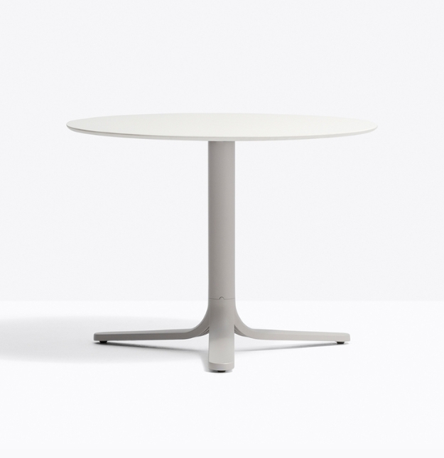 Fluxo 5460 sviluppa geometrie primarie partendo dalla sezione dello stelo per generare una forma essenziale e minimalista, ma riconoscibile. base a tre razze in pressofusione di alluminio e colonna in tubo d’acciaio. *piano tavolo escluso