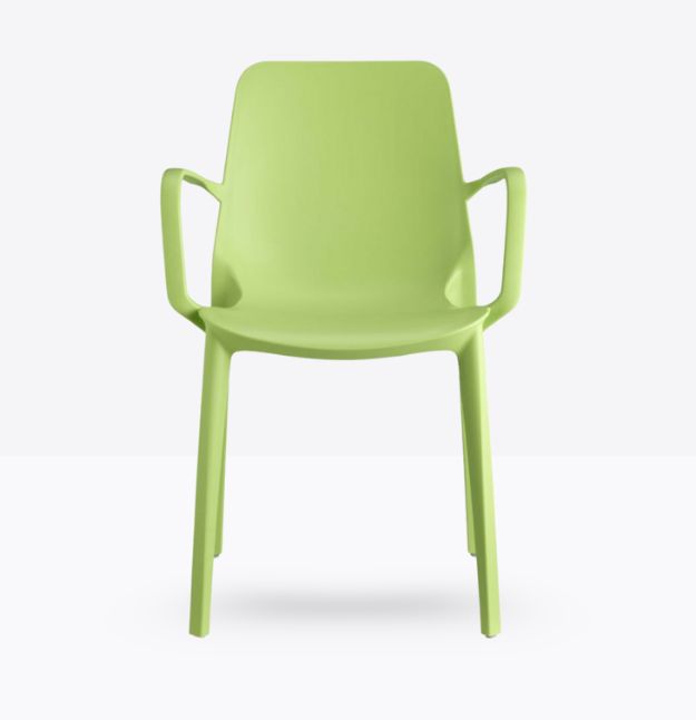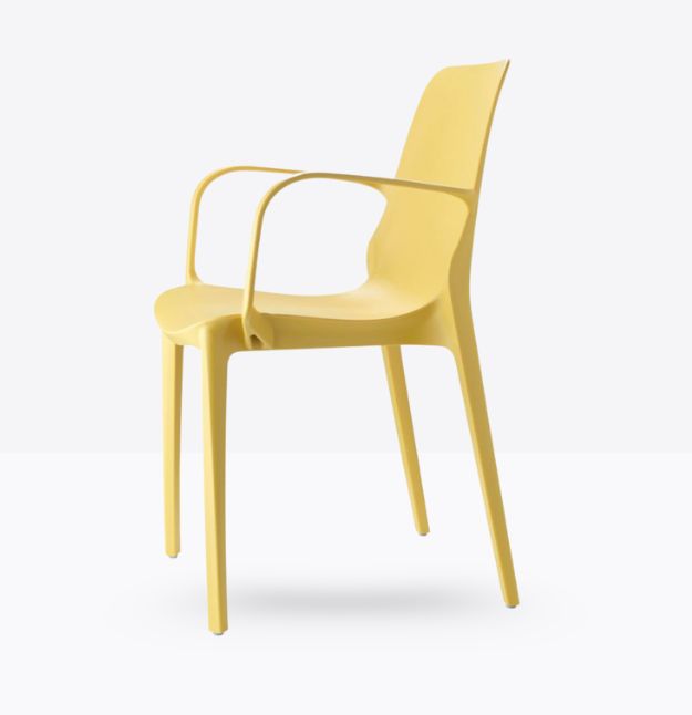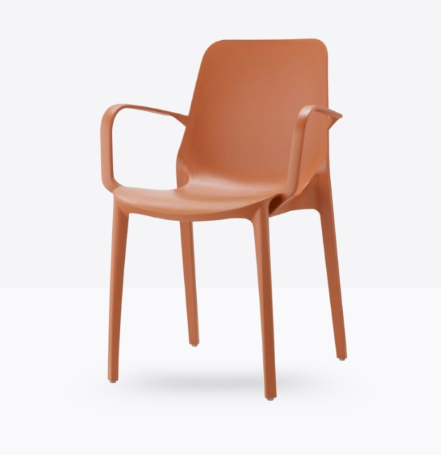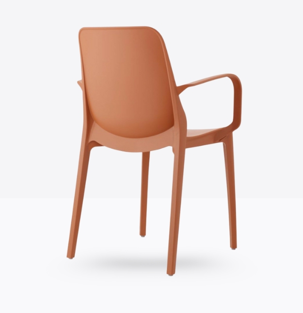 la poltroncina Ginevra P è caratterizzata da una struttura in tecnopolimero riciclabile. Rinforzato fibra di vetro. Tecnologia air moulding. Per uso interno/esterno. Impilabile.