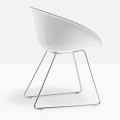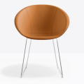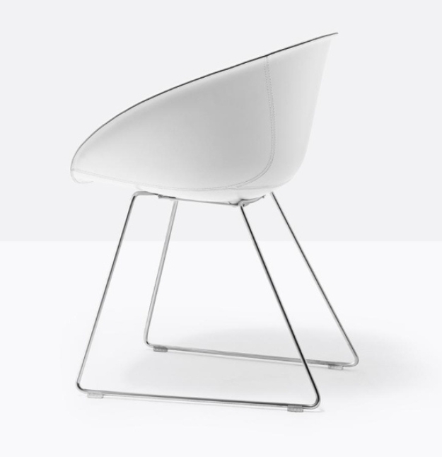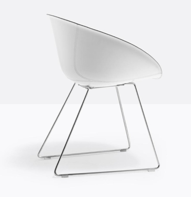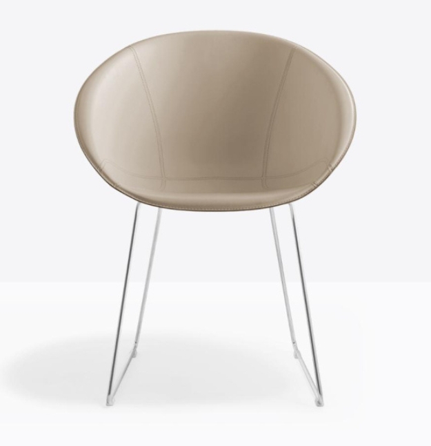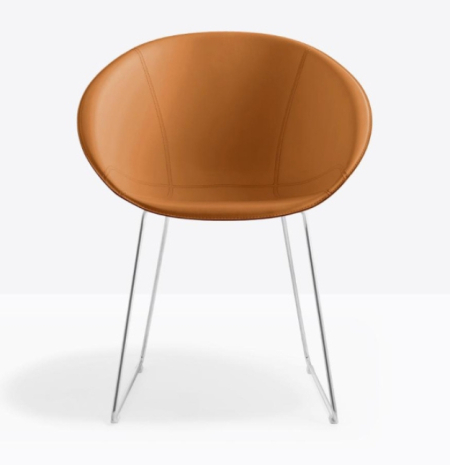La poltroncina Gliss 930 è confortevole e funzionale grazie alla forma sinuosa dei braccioli che cingono chi vi si siede in un abbraccio. Poltroncina in cuoio naturale o imbottita e rivestita con cuscino sfoderabile, struttura a slitta in tondino d’acciaio Ø 10 mm.
