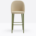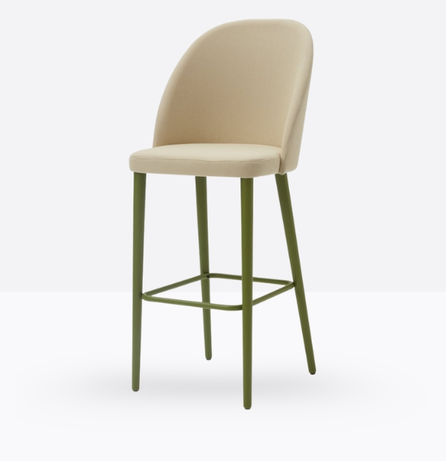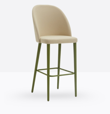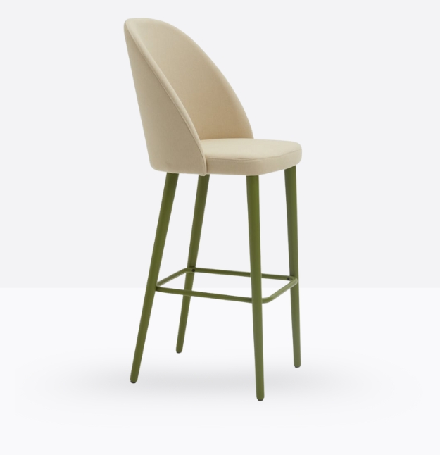 Lo sgabello imbottito Grace 571 ha uno schienale rivestito in multistrato curvato alto ed avvolgente ed un sedile rivestito “soft seat” con cinghie elastiche, entrambi possono essere tappezzati con stoffa cliente o con i rivestimenti visibili alla sezione finiture del sito, ha gambe coniche in legno di faggio massello che possono essere personalizzate in tutte le tinte e i colori laccati visibili in questa scheda o alla sezione finiture del sito, nonchè in tinta cliente o colori a campione, il poggiapiedi è in metallo satinato.