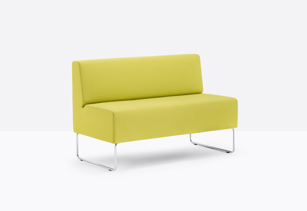 Host 200 è un sistema modulare e componibile di sedute singole, doppie e angolari con schienale e pouf, che si presta a numerose combinazioni e personalizzazioni. Divano a due posti imbottito in schiumato poliuretanico con struttura a slitta in tubo d’acciaio Ø 16mm.