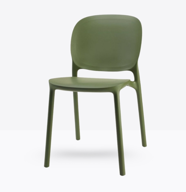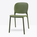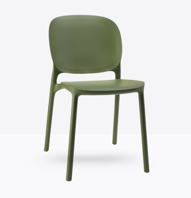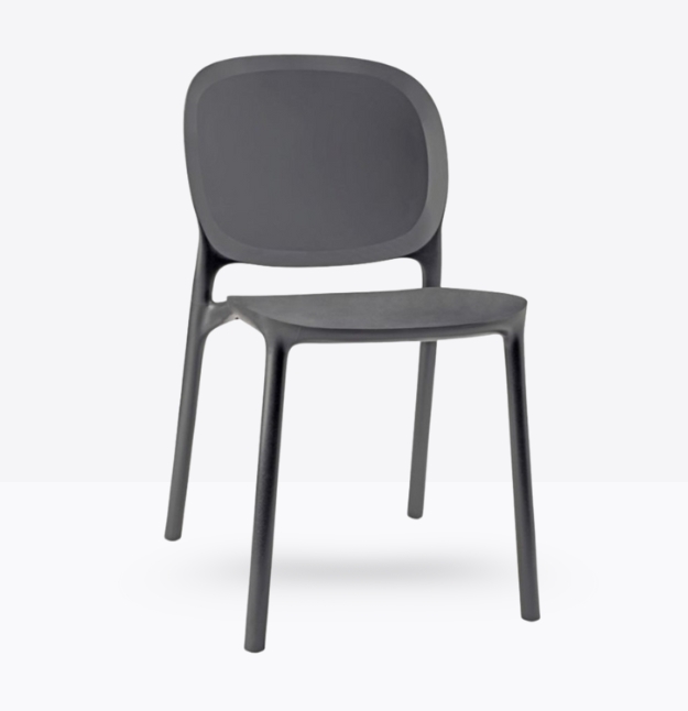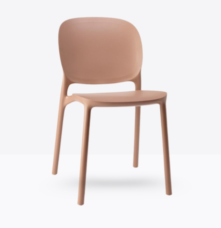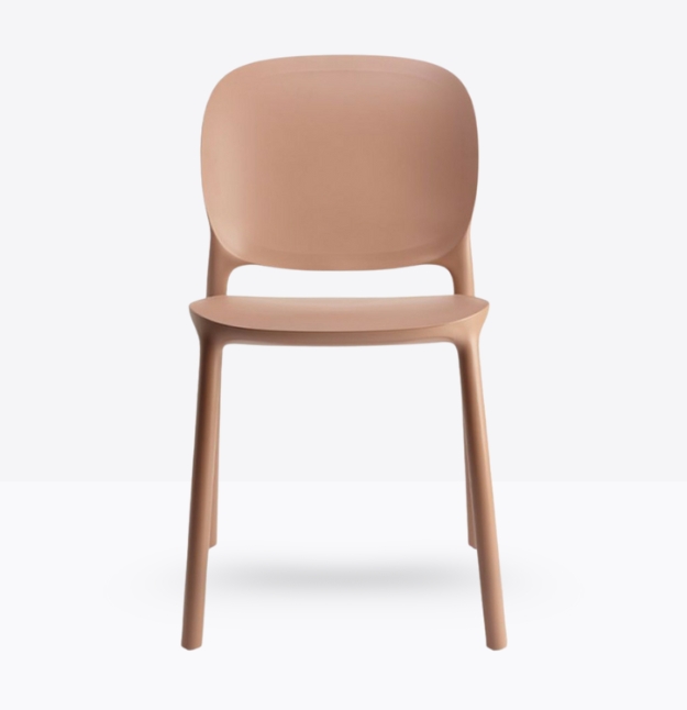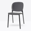 Per la sedia Hug 2380 è stato pensato un elemento estremamente caratterizzante: tra seduta e schienale, dalle forme arrotondate e in equilibrio, i designer hanno introdotto un elemento a fascia, definito da un motivo a righe in rilievo all-over e avvolgente proprio come un abbraccio.
