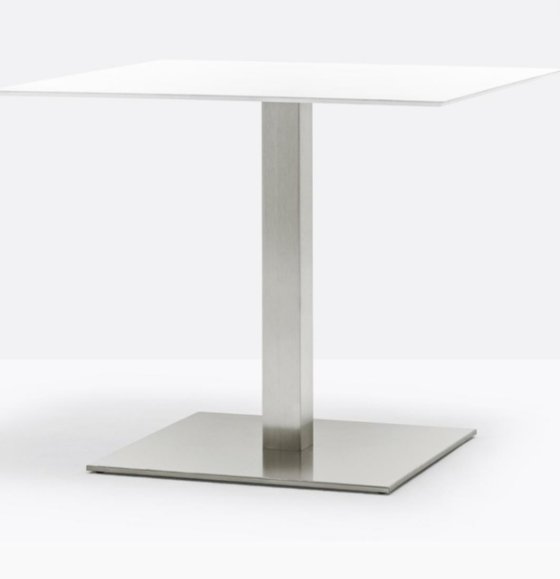 Inox 4470 è un tavolo sobrio e funzionale, definito da una geometria che lo rende adatto a contesti diversi. Base rettangolare in ghisa sabbiata, colonna e copribase in acciaio inox. *piano tavolo escluso