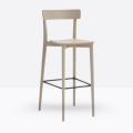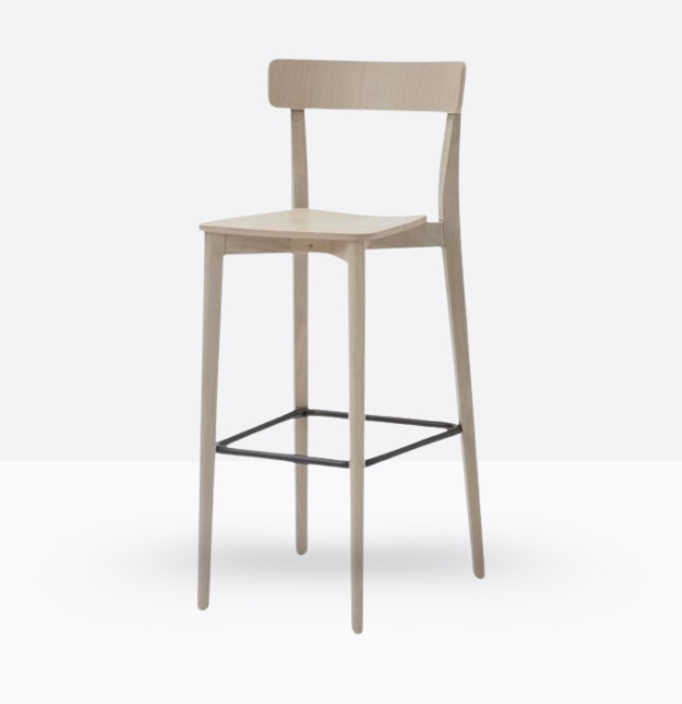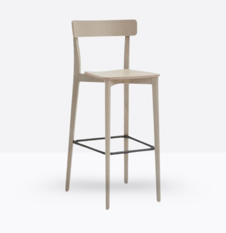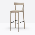 Lo sgabello Kat 306 ha una struttura in legno di rovere massello ed uno schienale a fascia curva in legno di rovere multistrato, può essere personalizzato in tutte le tinte e i colori laccati visibili in questa scheda o alla sezione finiture del sito, nonché in tinta cliente o colori a campione, la seduta nella versione slim è in legno di rovere multistrato curvato, il poggiapiedi è in metallo satinato.