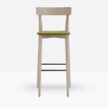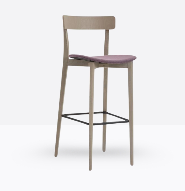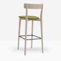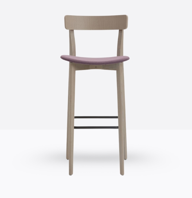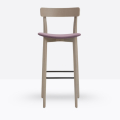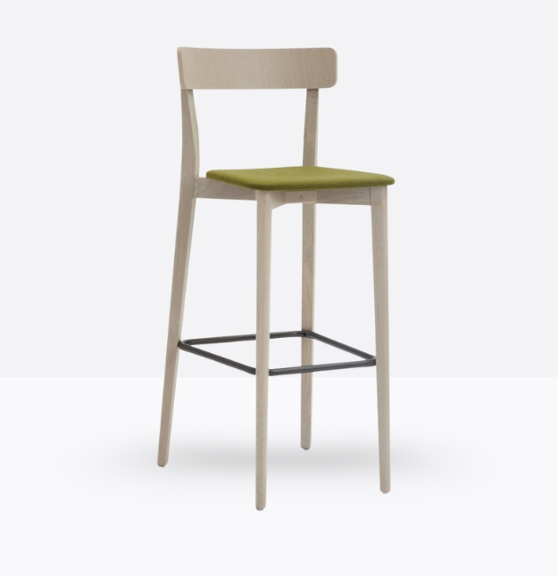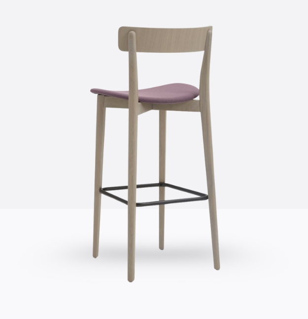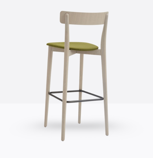 Lo sgabello Kat 307 ha una struttura in legno di rovere massello ed uno schienale a fascia curva in legno di rovere multistrato, può essere personalizzato in tutte le tinte e i colori laccati visibili in questa scheda o alla sezione finiture del sito, nonché in tinta cliente o colori a campione, la seduta nella versione slim è in legno di rovere multistrato curvato, il poggiapiedi è in metallo satinato.
