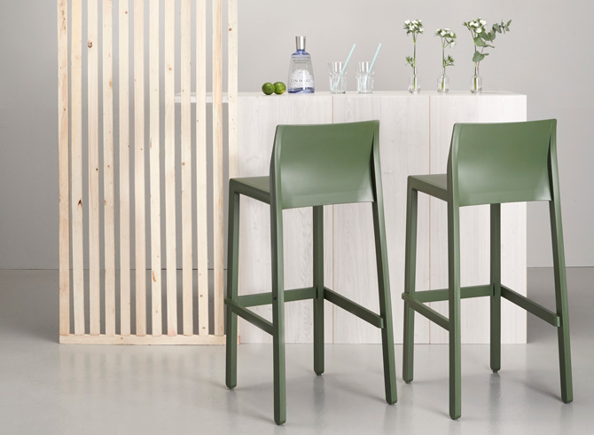 Lineare e sobria, tratti decisi e definiti, ergonomica e confortevole. lo sgabello Kate, grazie alla particolare forma delle gambe, realizza una soluzione tecnica unica che ne consente l’impilaggio perfetto, senza fughe, eccezionalmente stabile, con il minimo ingombro possibile, per ottimizzare gli spazi.