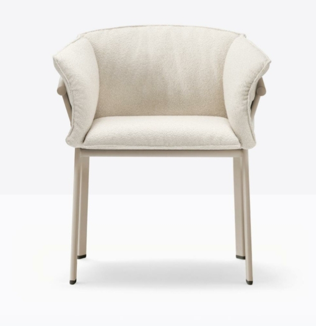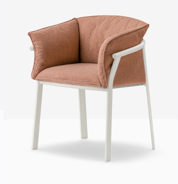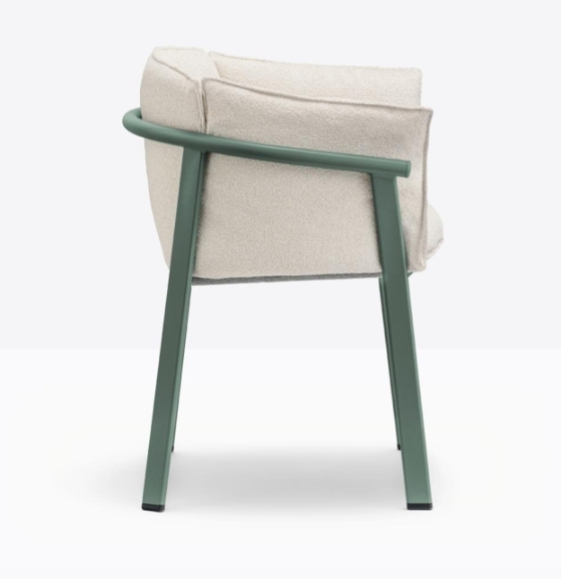 poltrona Lamorisse 3685 immaginata per essere collocata in ambienti outdoor. Il suo telaio in alluminio la rende perfetta per una veranda lungomare, per i dehors ombreggiati, per una tavola a bordo piscina e persino per il ponte di una nave. La struttura, realizzata in estruso di alluminio, con gambe a sezione ovale saldate ad un bracciolo a sezione rotonda, accoglie un cuscino in schiumato poliuretanico generoso e avvolgente.