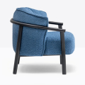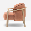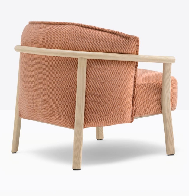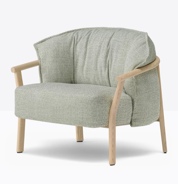 Lamorisse Wood 3689 è una poltrona caratterizzata da un contrasto tra la struttura portante, dalla forma sobria, ed il cuscino ricco e accogliente. La struttura, caratterizzata da un bracciolo a sezione rotonda in frassino curvato al vapore nel quale si innestano le gambe, accoglie un morbidissimo cuscino generoso e avvolgente. Le gambe a sezione ovale si integrano al bracciolo aumentando leggermente di spessore in prossimità degli innesti per garantire maggiore solidità. Una sottile struttura metallica sostiene la seduta mentre la presenza di cinghie elastiche e l’imbottitura in poliuretano espanso garantiscono un elevato livello di comfort. Schienale e seduta, morbidi e avvolgenti, sono sfoderabili e uniti tra loro attraverso una zip.