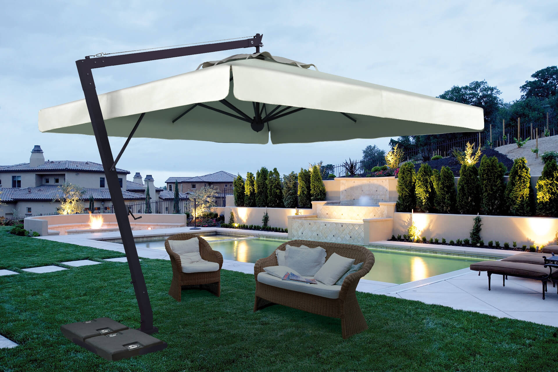 disponibile nelle versioni: Diametro 400 cm | 300×300 cm | 350×350 cm | 400×400 cm | 300×400 cm