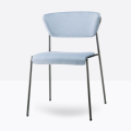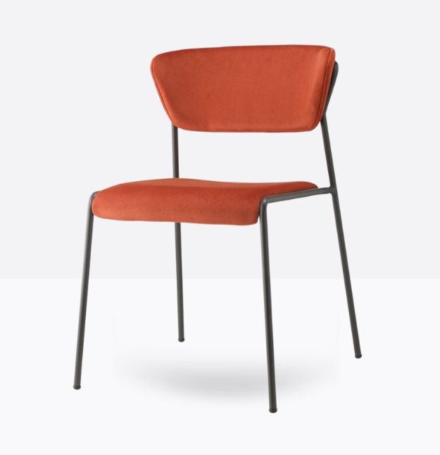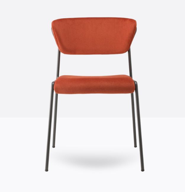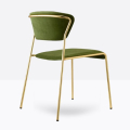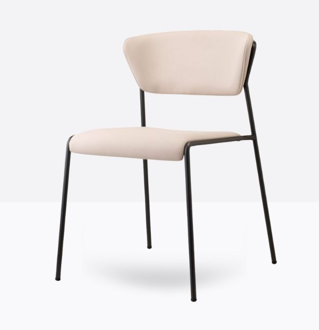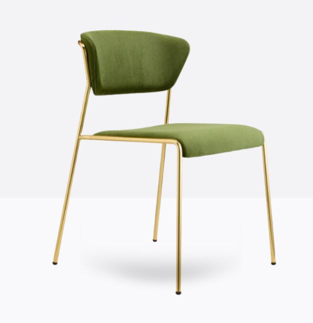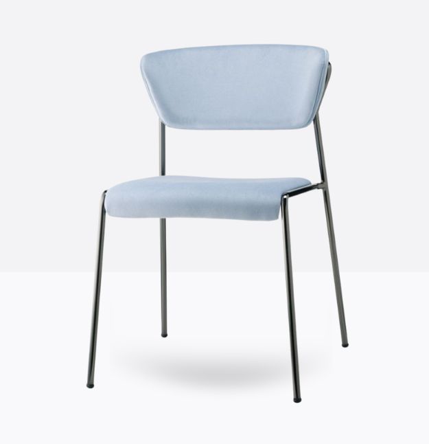 la sedia Lisa si ispira alle atmosfere eleganti degli interni anni ’50 e ’60. Il sottile telaio tubolare contorna e sostiene lo schienale di poltroncine e sedie, con seduta e schienale imbottito.